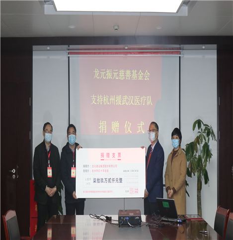 3月13日下午,龍元振元慈善基金再次落實一筆愛心捐贈:向杭州市紅十字會捐款79.2萬元,全額定向用于慰問132名杭州市屬醫院支援武漢醫務人員。自3月2日以來,龍元振元慈善基金已先后向復旦大學附屬華山醫院援鄂醫療隊、寧波市援鄂醫療隊醫護人員進行定向捐贈慰問。 ...了解更多>>
