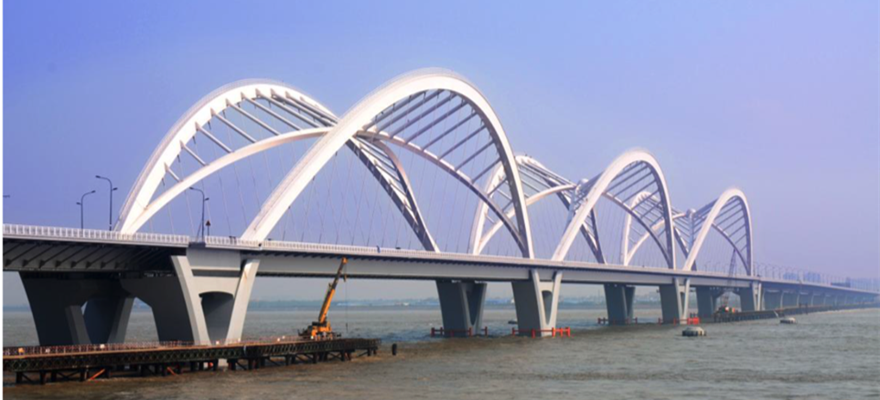 該項目是杭州市城市總體規劃(2001-2020)中“兩繞三縱五橫”城市快速路網系統中的重要組成部分,是浙江省重點工程建設項目。大橋全長1855米,概算總投資10.82億元,主橋上部結構為3×210m跨徑的連續梁-鋼拱組合體系結構橋梁,鋼結構總重約1.3萬噸,施工采用首創“整體頂推施工”工法,創新了建設理念與施工技術,多項科研成果達國際領先水平,體現了全壽命經濟性理念,為推動我國組合結構橋梁的發展做出貢獻。項目榮獲第十一屆中國土木工程詹天佑獎、2012-2013年度中國建設工程魯班獎、全國市政金獎。