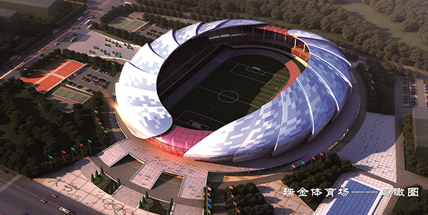 瑞金市體育中心體育場(chǎng)作為國(guó)家乙類體育場(chǎng)館,總占地面積150畝,具有跨度大,結(jié)構(gòu)造型復(fù)雜、施工難度高等特點(diǎn)。建筑高度挑蓬結(jié)構(gòu)上弧中心最高點(diǎn)為40.5米,為鋼筋混凝土結(jié)構(gòu)、鋼結(jié)構(gòu)合金屋頂。結(jié)構(gòu)寬202米,長(zhǎng)219米,總建筑面積為25137.77㎡;屋面由四部分組成,整體為曲面,總用鋼量達(dá)到5380噸。在質(zhì)量控制、科技創(chuàng)新、安全管理、綠色施工等方面均達(dá)到國(guó)內(nèi)先進(jìn)水平,自開(kāi)館以來(lái)已承辦過(guò)多次國(guó)家、省、市、縣級(jí)賽事和活動(dòng)。