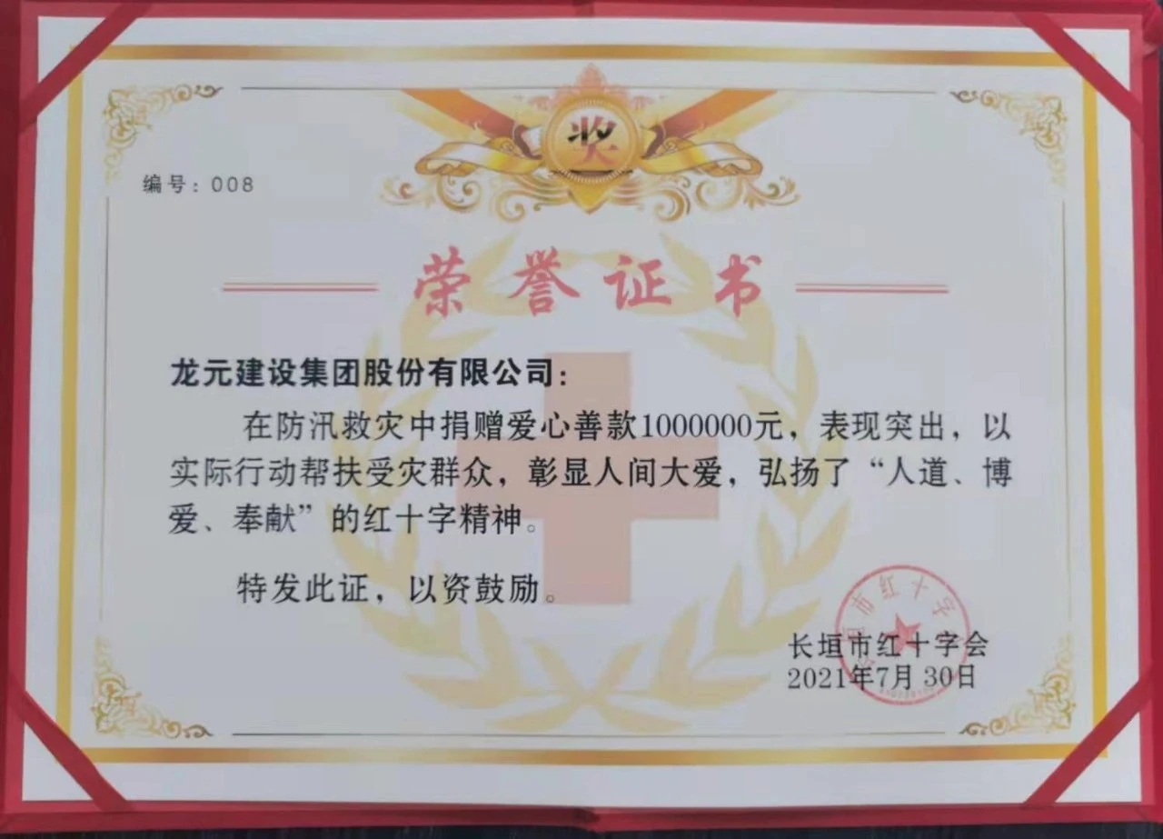 汛情發生后,龍元集團一直心系災區,密切關注災情情況。為幫助長垣市災后重建,盡快恢復生產,龍元振元慈善基金決定向長垣市紅十字會定向捐贈100萬元。