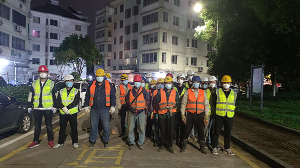 5月3日凌晨,項目工人再次響應號召,前往援助城區(qū)街道落實封閉隔離措施。