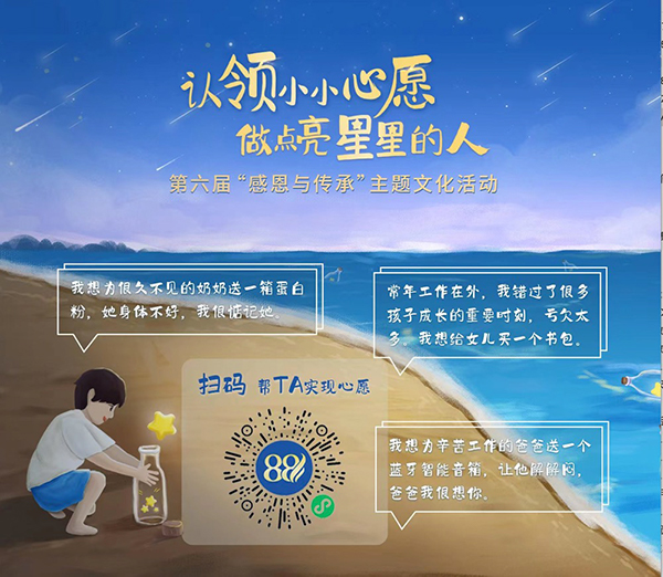 88日當天,“心愿漂流瓶”通過小程序正式公布,很快獲得了大家的積極響應:集團多位高管帶頭支持,機關員工、項目經理以及下屬單位也紛紛行動,通過個人或集體的名義獻上愛心。