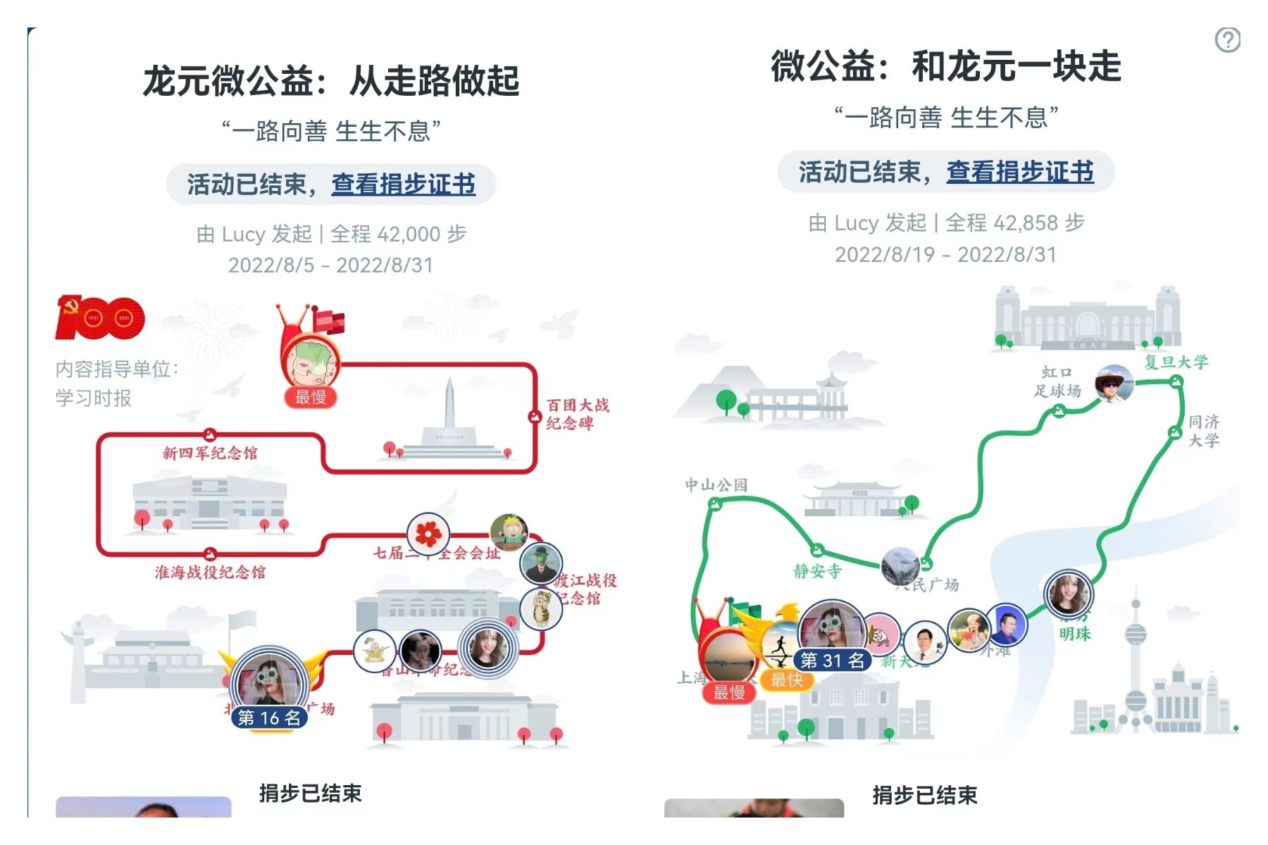 此外,不少龍元人也在其他社交平臺來奉獻愛心:寧波分公司徐雙友在水滴籌平臺為需要幫助的人進行捐款,總承包管理公司葉莉麗通過支付寶捐贈步數守護鄉村溫暖小家,還有很多人通過微博公益等方式為重慶山火救援、瀘定地震賑災等項目捐款……數字公益,正成為越來越多龍元人的日常。