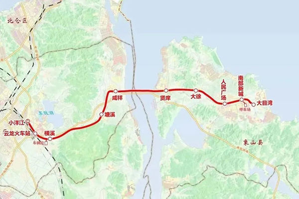 寧波至象山市域(郊)鐵路(簡稱“寧象線”),作為寧波市軌道交通12號線,為寧波市軌道交通網中的南翼骨架線,連接寧波主城與象山,支撐城市空間向南拓展,覆蓋鄞州區云龍、橫溪、塘溪、咸祥及象山縣賢庠、大徐、大目灣。寧象線線路全長約61.7公里,全線設站10座,平均站間距6.83公里,其中地下站2座、高架站8座,全線設橫溪車輛段1座及象山南部新城停車場1座。采用目標速度為160公里/小時的市域A型車。
