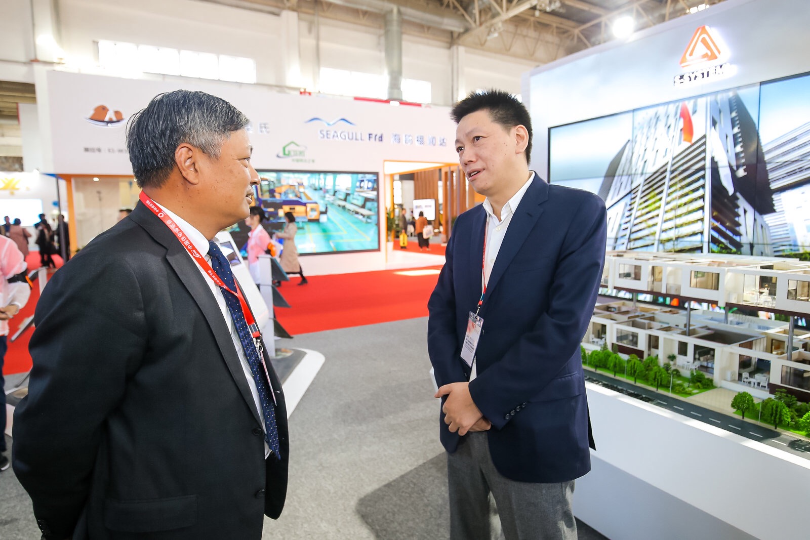 集團總裁賴朝暉(右)與住建部住宅產業(yè)中心副主任梁俊強先生交流