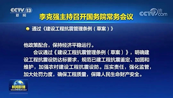 重磅!國務院通過《建設工程抗震管理條例(草案)》!